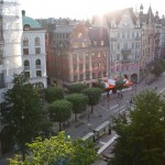Kvällen innan midsommar ser det ut såhär när man tittar ut från våra fönster – ett tämligen folktomt Stureplan. Ha ett fint firande i morgon vetja!