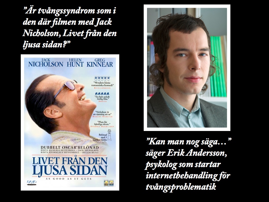 Det kan man nog säga. Melvin, som spelas av Jack Nicholson, lider av s.k. ”tvättvång” vilket innebär att Melvin får jobbiga tankar om att han kan ha blivit smutsig eller smittad med bakterier. För att lindra obehaget tvättar Melvin händerna frenetiskt eller har på sig plasthandskar. Men det finns många andra typer av tvång än att tvätta händerna överdrivet. Vanliga tvångsteman kan vara att man glömt låsa dörren, att man ska råka skada någon eller göra misstag. Andra teman kan vara att man får obehag av att saker inte ligger i ordning eller symmetriskt. Man hamnar då i ritualer för att ställa saker ”rätt” eller måste städa lägenheten i flera timmar.