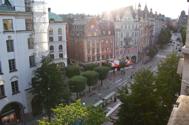 Kvällen innan midsommar ser det ut såhär när man tittar ut från våra fönster – ett tämligen folktomt Stureplan. Ha ett fint firande i morgon vetja!