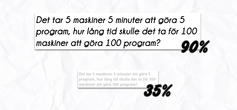“Det tar 5 maskiner 5 minuter att göra 5 apparater, hur lång tid tar det för 100 maskiner att göra 100 apparater? 100 eller 5 minuter”
