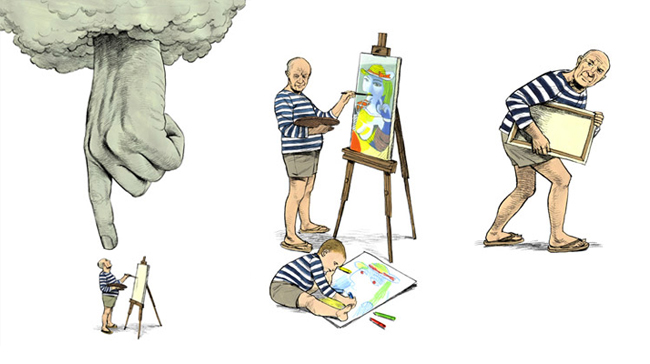 Picasso sade en gång att dåliga konstnärer imiterar – de stora stjäl. Han menade dessutom att man som konstnär, även om man försöker, aldrig helt och hållet kan kopiera en annans verk.